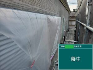 施工現場のご紹介☆養生、屋根下塗り、外壁上塗り、付帯部塗装など
