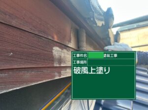 目立つ場所にある破風板は、塗装せず劣化したままにすると外観にも影響してしまいますので外壁塗装の際に一緒に塗装をおこなうことをおススメしております😊