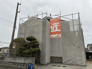 全体の流れとしては、足場を設置してから高圧洗浄を行い、その後に塗装作業に入ります。