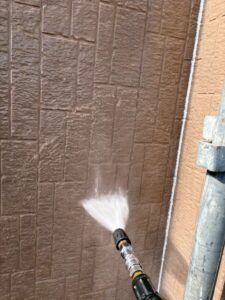 外壁に付着しているホコリやカビ、コケ、前回の塗装による塗膜を綺麗に洗い落とすことが目的となります😉