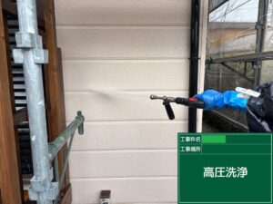 外壁塗装の高圧洗浄は、塗装作業に入る前に行う工程です👆