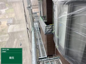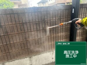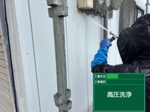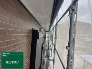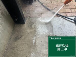 施工現場のご紹介☆高圧洗浄、養生、下塗りなど