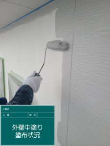 本日は外壁塗装の中塗りの様子からお伝えします(^o^)/