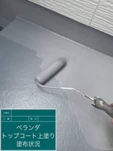 続いて、外壁塗装の上塗りの様子です(^o^)/