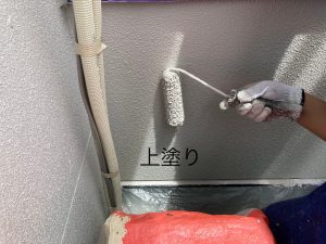 中塗り・上塗りは同じ塗料を使用するのですが、上塗り材を2回重ねることによって、仕上がりに厚みを持たし、本来その塗料で発揮できる色や艶が完全に表現できるので、塗装の仕上がり具合がとても綺麗になります。