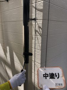 3. 上下重なり水平方向のダメ込みを行った後ローラーを水平方向に使って塗装して、完了後にタスペーサーを抜き取らずに完了。