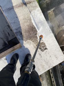 こちらはマンション屋上の高圧洗浄の様子です。