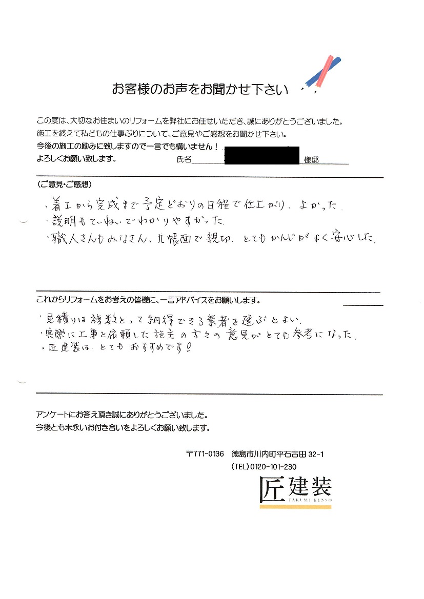 (これからリフォームをお考えの皆様に、一言アドバイスをお願いします。)